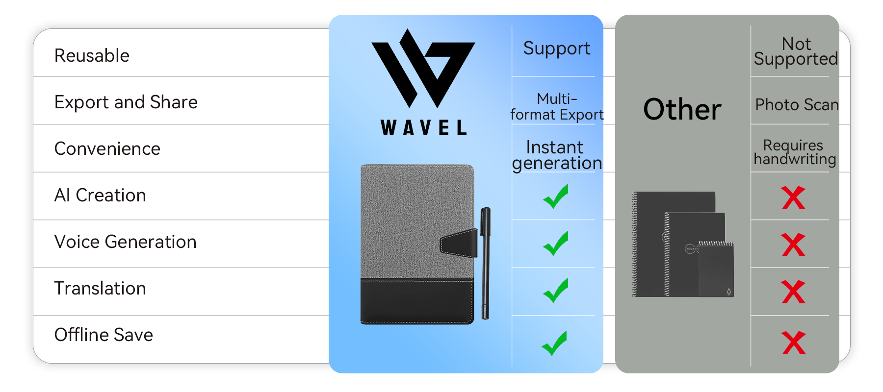 No matter where you are or what language you speak, your ideas deserve to be heard. Wavel Digital Notebook helps you translate and create seamlessly across multiple languages—so you can share your thoughts freely, connect with more people, and let your creativity travel the world.